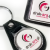 Skóropodobne breloki z żywiczną naklejką wypukłą: kwadratowe lub okrągłe.