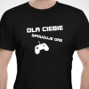 Nadruk na koszulkach w kolorach: Ciemny Szary, Ciemny Zielony, Granatowy, Ciemny Różowy, Czerwony, Niebieski i Czarny jest takich kolorów jak na podglądzie koszulki czarnej.