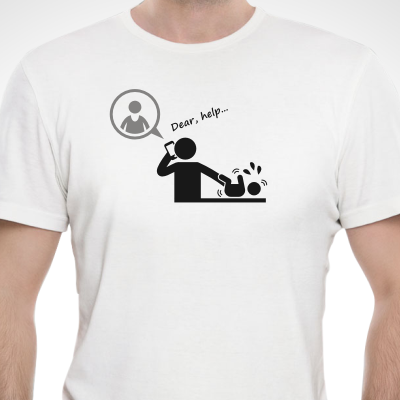 Nadruk na koszulkach w kolorach: Ciemny Szary, Ciemny Zielony, Granatowy, Ciemny Różowy, Czerwony, Niebieski i Czarny jest takich kolorów jak na podglądzie koszulki czarnej.