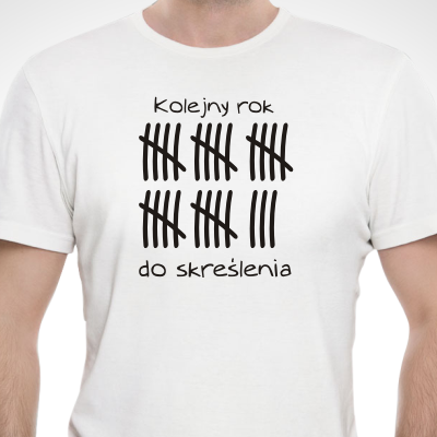 Na koszulkach w kolorach: Żółty, Jasny Różowy, Jasny Szary i Biały nadruk wygląda tak jak na koszulce w podglądzie w kolorze białym