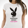 Na koszulkach w kolorach: Żółty, Jasny Różowy, Jasny Szary i Biały nadruk wygląda tak jak na koszulce w podglądzie w kolorze białym